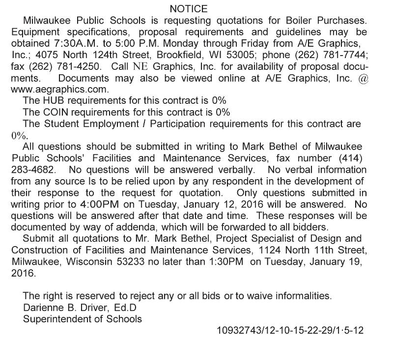 MPS Requesting Quotations for Boiler Purchases