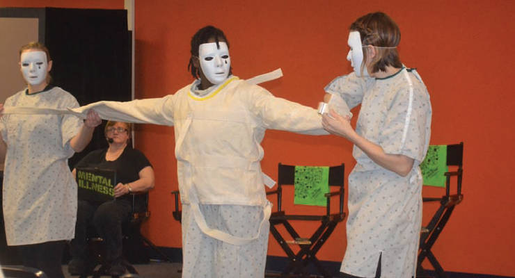 The performance addressed the symptoms and daily challenges of those living with bipolar disorder, depression, ADHD, schizophrenia and PTSD. The stigma of mental health diagnoses and how individuals are treated versus someone with cancer or heart disease was communicated through the stories portrayed by the actors representing each mental illness.