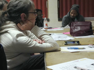 Markesha Chambers and Damien Perks help lead in conversation. Photo by Dylan Deprey