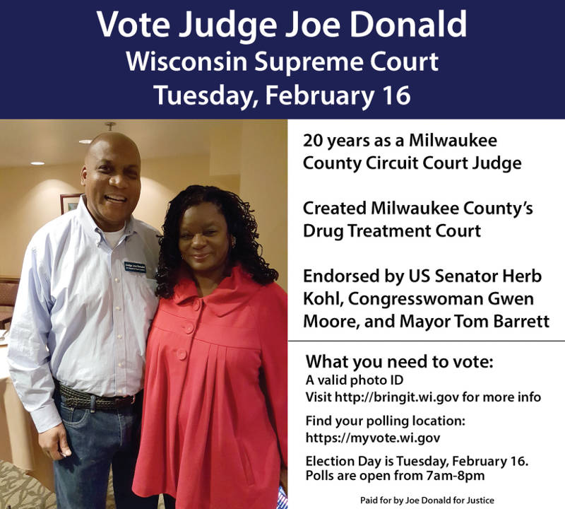 On this moral outrage of Wisconsin’s systematic mass incarceration of young African American men, Judge Joe Donald has by far the best record, and the more clearly articulated position, in the Wisconsin State Supreme Court election.