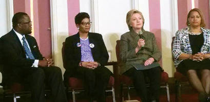 Next to Clinton sat Wisconsin Congresswoman Gwen Moore, Geneva Reed-Veal; mother of the late Sandra Bland and Annette Nance-Holt from Chicago; mother of a 16- year-old boy who was shot and killed on a bus.