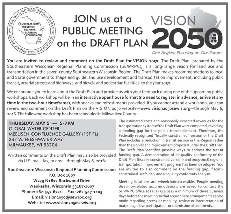 Share: Click to share on Facebook (Opens in new window) Facebook Tweet Click to email a link to a friend (Opens in new window) Email Click to print (Opens in new window) Print Public Meeting on Draft Plan for Vision 2050 Regional Planning April 23, 2016 Share: Click to share on Facebook (Opens in new window) Facebook Tweet Click to email a link to a friend (Opens in new window) Email Click to print (Opens in new window) Print