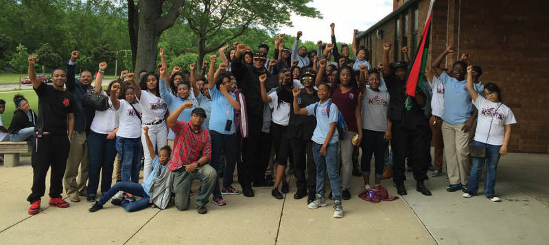 While stopped at the intersection of 60th and Good Hope Rd. a crescendo of chants rang through the air. Pastel colored signs inked with the mantras being shouted read, “Stop the Violence” and “Black Lives Matter.” At the helm a red, black and green flag swayed in the wind signifying the Black Panthers aid in the march. The line of protestors grew longer student after student. Once at the corner around 100 young adults raised their fists in the air and repeated after Black Panther Black General King Rick, “TOO BLACK…TOO STRONG… TO BE…DENIED.”