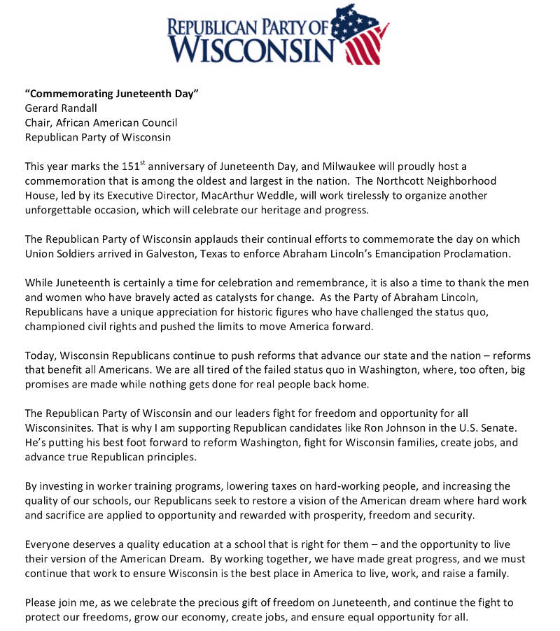 Share: Click to share on Facebook (Opens in new window) Facebook Tweet Click to email a link to a friend (Opens in new window) Email Click to print (Opens in new window) Print Commemorating Juneteenth Day June 18, 2016 Share: Click to share on Facebook (Opens in new window) Facebook Tweet Click to email a link to a friend (Opens in new window) Email Click to print (Opens in new window) Print