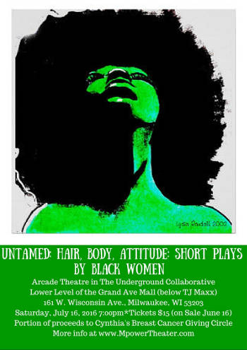 Milwaukee, WI – MPower Theater Group, Milwaukee’s social justice community theater group is finishing its 1st season with the powerful theatrical event UnTamed: Hair, Body, Attitude-Short Plays by Black Women in collaboration with The New Black Fest and playwright Dominique Morisseau. This compelling production is directed by Catina Cole, local theater activist, at the The Underground Collaborative, 161 W. Wisconsin Avenue, Lower Level, in Milwaukee, WI, July 16, 2016 at 7:00pm.
