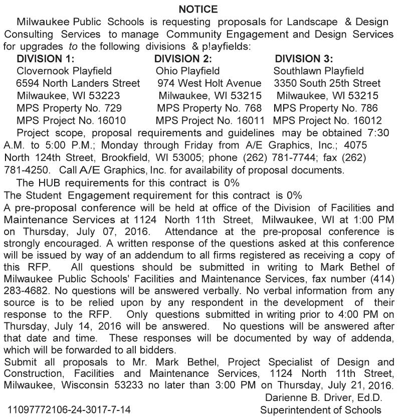 Share: Click to share on Facebook (Opens in new window) Facebook Tweet Click to email a link to a friend (Opens in new window) Email Click to print (Opens in new window) Print MPS Requesting Proposals for Landscape Design & Consulting Services July 2, 2016 Share: Click to share on Facebook (Opens in new window) Facebook Tweet Click to email a link to a friend (Opens in new window) Email Click to print (Opens in new window) Print