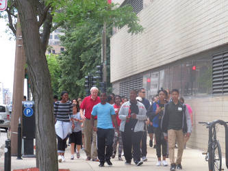 On a warm, partly cloudy Friday afternoon, Milwaukee teens and Mayor Tom Barrett enjoyed the weather and fellowship while walking to promote healthy lifestyles in Milwaukee.