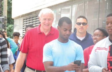 Mayor Barrett walking with SYIP interns as part of his 100 Miles in 100 Days Challenge. (Photo by Karen Stokes)