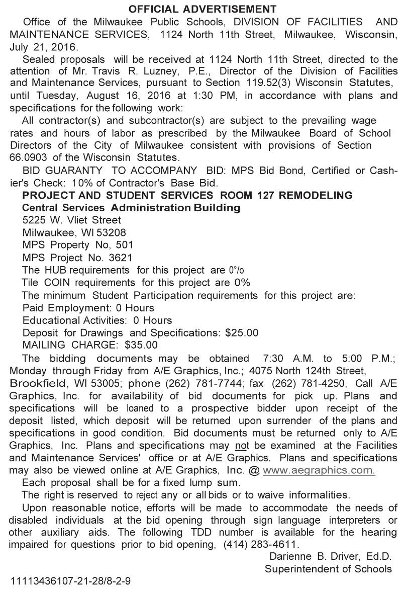 Share: Click to share on Facebook (Opens in new window) Facebook Tweet Click to email a link to a friend (Opens in new window) Email Click to print (Opens in new window) Print MPS Requesting BIDs for Project and Student Services Room Remodeling at Central Administration Building July 23, 2016 Share: Click to share on Facebook (Opens in new window) Facebook Tweet Click to email a link to a friend (Opens in new window) Email Click to print (Opens in new window) Print
