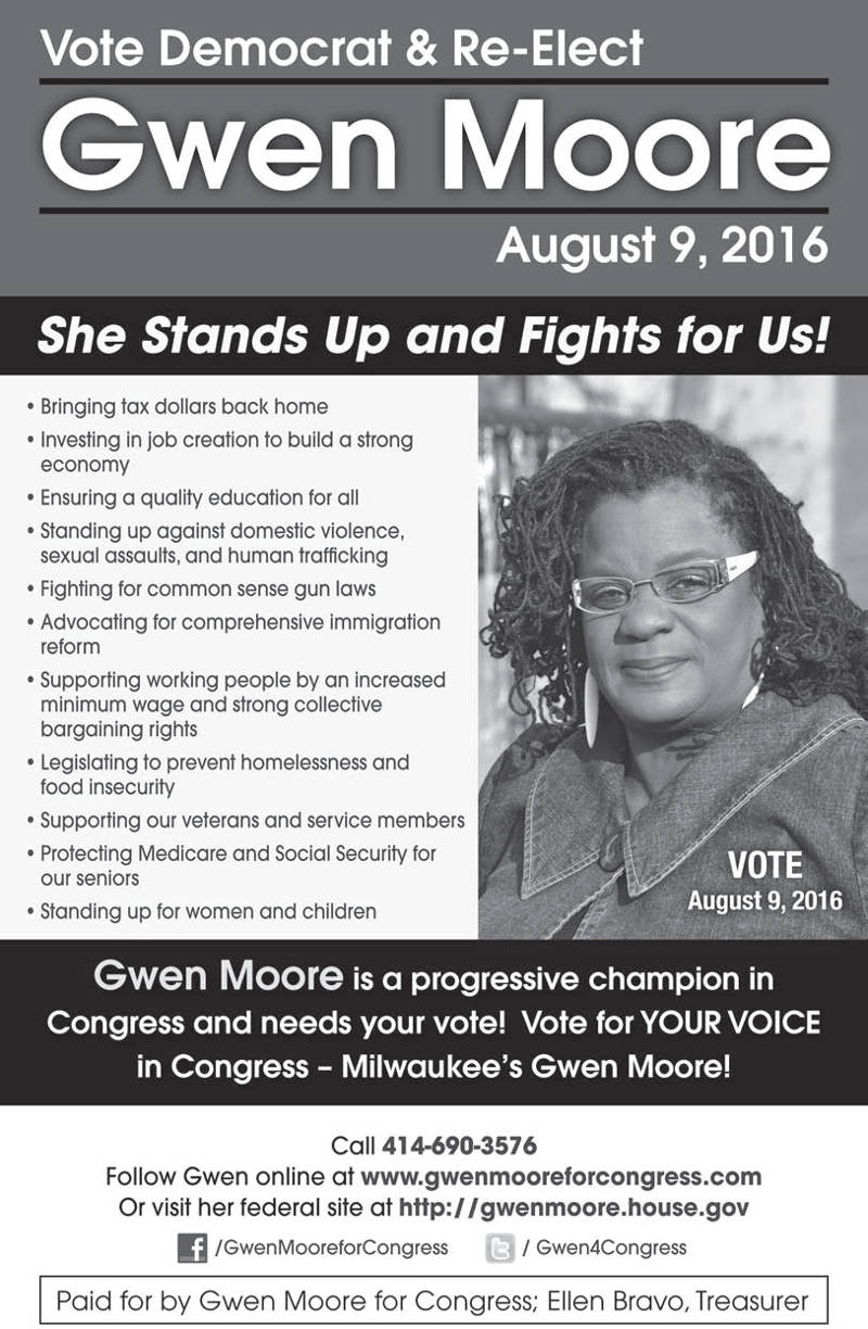 Vote Democrat & Re-elect Gwen Moore on August 9th