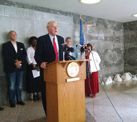 Mayor Tom Barrett applauds new voting laws that go into effect in Wisconsin in November. (Photo By Mrinal Gokhale)