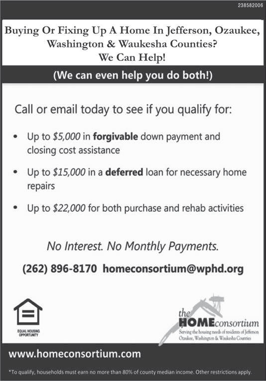 Share: Click to share on Facebook (Opens in new window) Facebook Tweet Click to email a link to a friend (Opens in new window) Email Click to print (Opens in new window) Print Buying or Fixing Up A Home In Jefferson, Ozaukee, Washington or Waukesha Counties? We Can Help! August 20, 2016 Share: Click to share on Facebook (Opens in new window) Facebook Tweet Click to email a link to a friend (Opens in new window) Email Click to print (Opens in new window) Print
