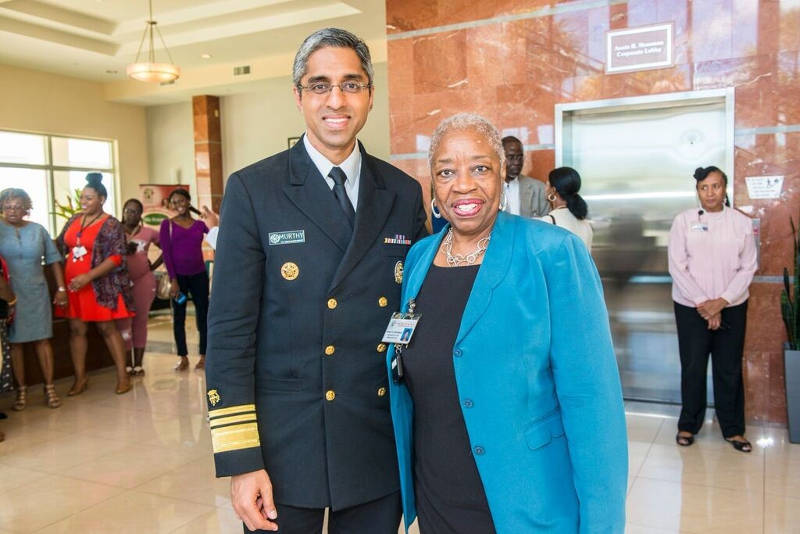 Surgeon General Vivek Murthy, M.D. with Annie Neasman, CEO at Jessie Trice Community Health Center, Inc.