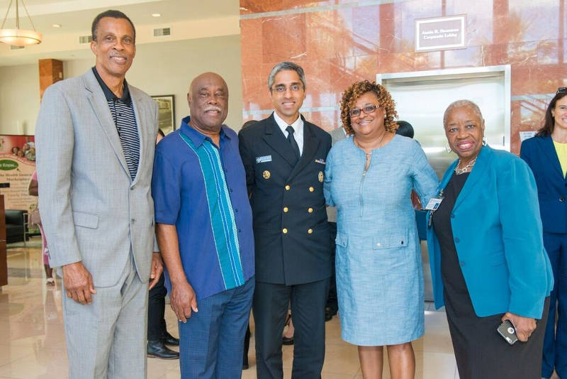 Vice Admiral (VADM) Vivek H. Murthy, M.D., M.B.A., Surgeon General for the United States of America, stopped in at the corporate headquarters of the Jessie Trice Community Health Center, Inc. During his brief visit, he met with the organization’s leadership, including members of the Board of Directors and the staff.