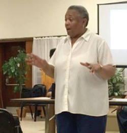 Dr. Patricia McManus explains the dangers of lead water for pregnant women and their child. (Photo by Dylan Deprey)