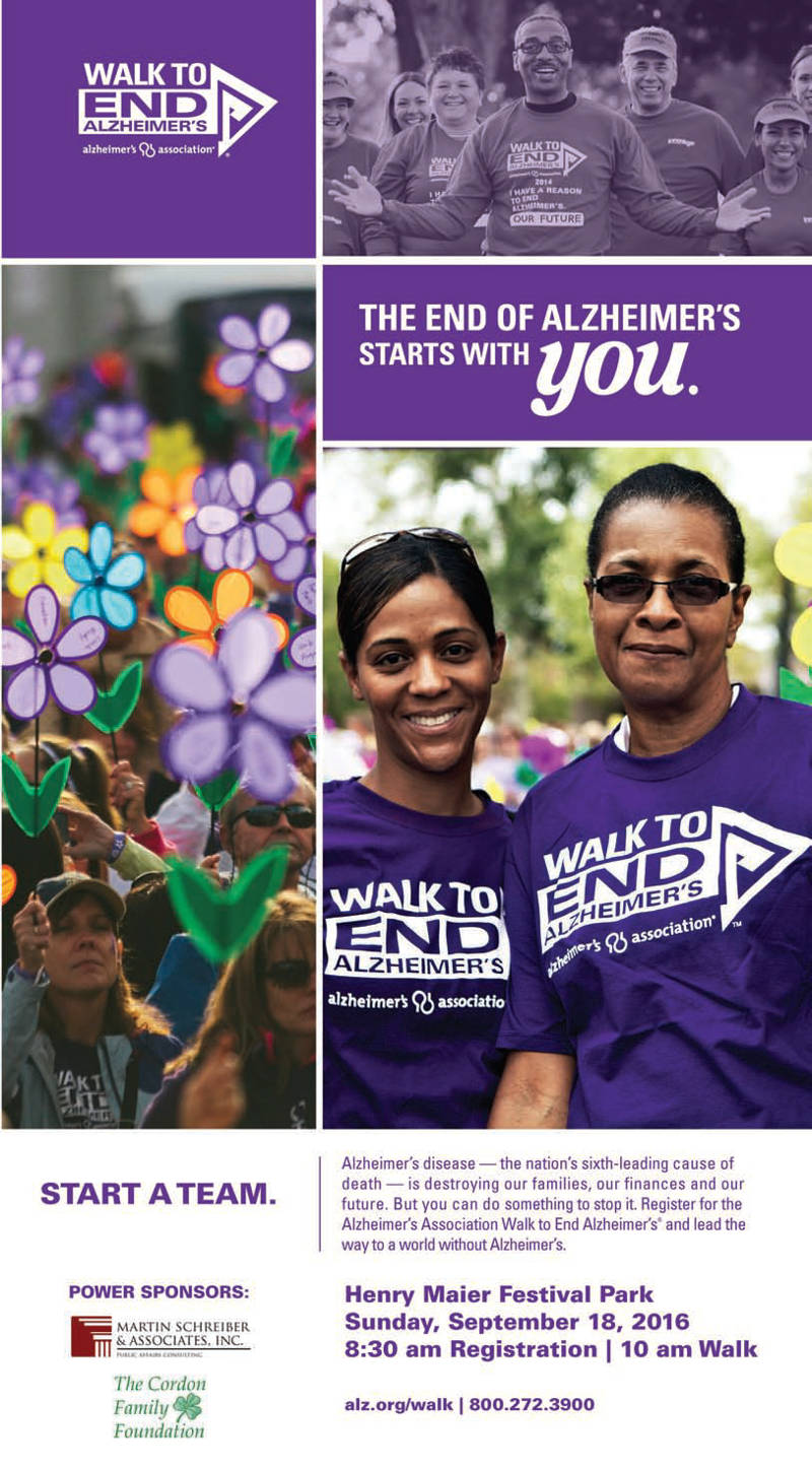 In 2015, nearly $814,000 was raised by the Walk to End Alzheimer’s in Milwaukee County to help individuals living with Alzheimer’s and their families access support and services, including the Alzheimer’s Association 24/7 Helpline, support groups, research, education and training.
