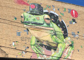 It is not everyday to open the blinds and find a giant neon frog tattooed on the of the building across the street. Well on Milwaukee’s Eastside, there is much more where that came from. Whether it’s a giant beer mug, a contemplating prison inmate the size of a building, or a memorial to an albino deer, the Black Cat Alley has it.