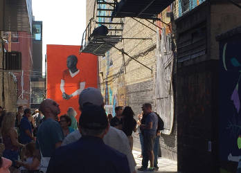 The 14 murals cover around 11,000 sq. ft. worth of art. With that much art that meant a lot of paint. Williams-Ng applauded the long lists of sponsors including the recently opened Village Paint and Hardware, who donated $3,000 worth of paint plus anything from scaffolding to tape measures.