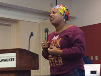Panelists Tyrone Miller aka DJ Bizzon, UWM urban education doctoral candidate Monique Liston and Nation of Islam’s Dr. David Muhammad all gave an in depth look into Hip- Hop’s power of delivering messages to the masses about the systemic racism and structural violence black people face daily.