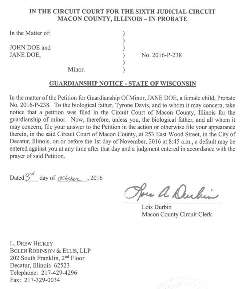 Share: Click to share on Facebook (Opens in new window) Facebook Tweet Click to email a link to a friend (Opens in new window) Email Click to print (Opens in new window) Print Tyrone Davis Guardianship Notice October 7, 2016 Share: Click to share on Facebook (Opens in new window) Facebook Tweet Click to email a link to a friend (Opens in new window) Email Click to print (Opens in new window) Print