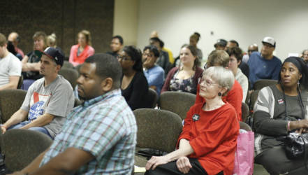 A crowd of around 40 people from campus and the community gathered in the Union at UW-Milwaukee College to hear speaker Reggie Jackson propose the question, “Do black lives matter to law enforcement?”