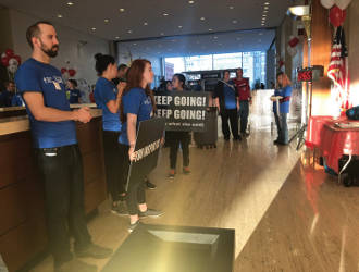Volunteers, staff and other climbers encouraged one another with signs, smiles, hugs and inspiring words.