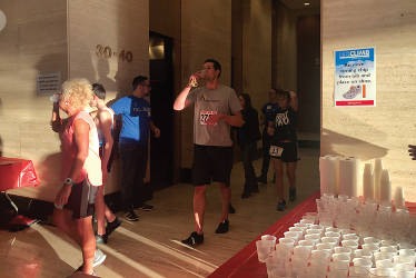 Water was provided for the ultimate climbers to keep them hydrated on their multiple climbs up and down the 47 flights. (Photo by Nyesha Stone)