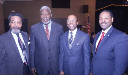 Former common council presidents (l-r) Ben Johnson, Marvin Pratt and Willie Hines are picture with current common council president Ashanti Hamilton. (Photo by Robert Bell)