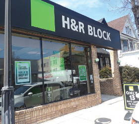Many tax preparation companies are open all year, like this H&R Block on Oakland. (Photo by Ethan James Duran)