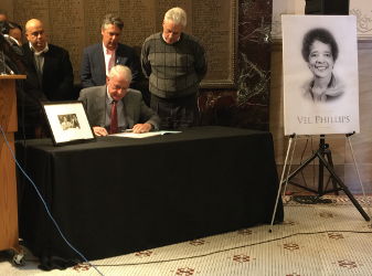 Civil rights activist Vel Phillips was the first woman to sit on the Milwaukee Common Council. She was the first woman to serve as a judge in Milwaukee County. She was the first woman and first African American to graduate from the University of Wisconsin law school. She was also the first woman and first African American elected to a statewide constitutional office, serving as the Secretary of State of Wisconsin from 1979-1983.