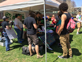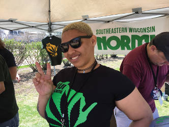 Jaz Morgan of Southeastern Wisconsin NORML came to the event to hand out paperwork about the benefits of the legalization of marijuana. (photo by Evan Casey)