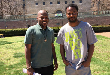Rick Banks (left) and Jafar Banda both work with Milwaukee community organizations that are pushing for the legalization of marijuana across Milwaukee and the State. (photo by Evan Casey)